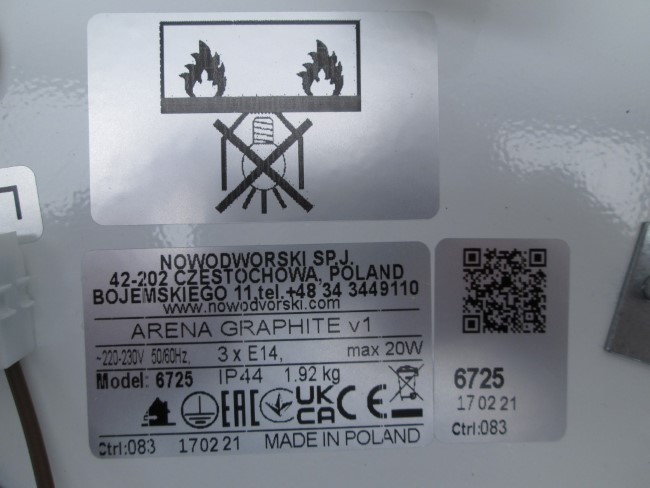 3 x max. 20W-E14, 220-230V, 50/60Hz, class I, IP44 |