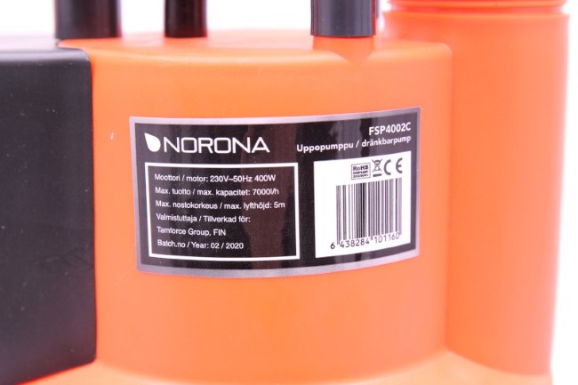 Tuote ei täytä sähköturvallisuuslain (1135/2016) eikä tuotetta koskevan eurooppalaisen harmonisoidun standardin EN 60335-1 ja EN 60335-2-41 vaatimuksia. Tuote ei täytä kotelointiluokan IPX8 vaatimuksia.