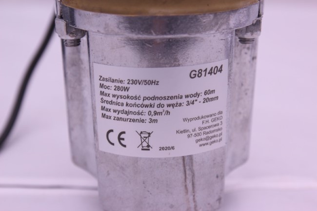 230V~; 50Hz; 280W; Class II; IPX8 |