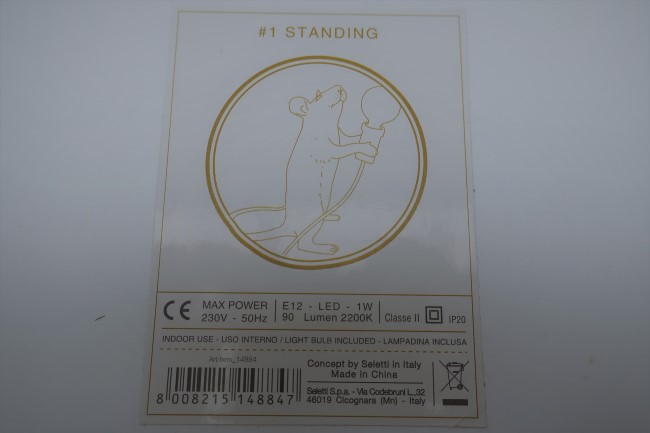 tyyppi ei ole eurooppalaisten turvallisuusvaatimusten mukainen. Valaisimesta puuttuvat kaikki standardin vaatimat merkinnät, mukaan lukien CE-merkintä.
