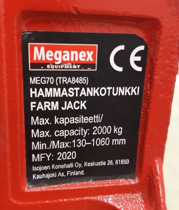 Tuote ei täytä valtioneuvoston asetuksen koneiden turvallisuudesta (400/2008) vaatimuksia eikä tuotetta koskevassa eurooppalaisessa harmonisoidussa standardissa SFS-EN 1494+A1 määriteltyä turvallisuuden tasoa. Tuotteen rakenteessa ja käyttöohjeissa on puutteita. Puutteista johtuen tuote ei sovellu tarkoitukseensa ja sen käyttö voi aiheuttaa loukkaantumisvaaraa tai muuta terveyden tai omaisuuden vaaraa.