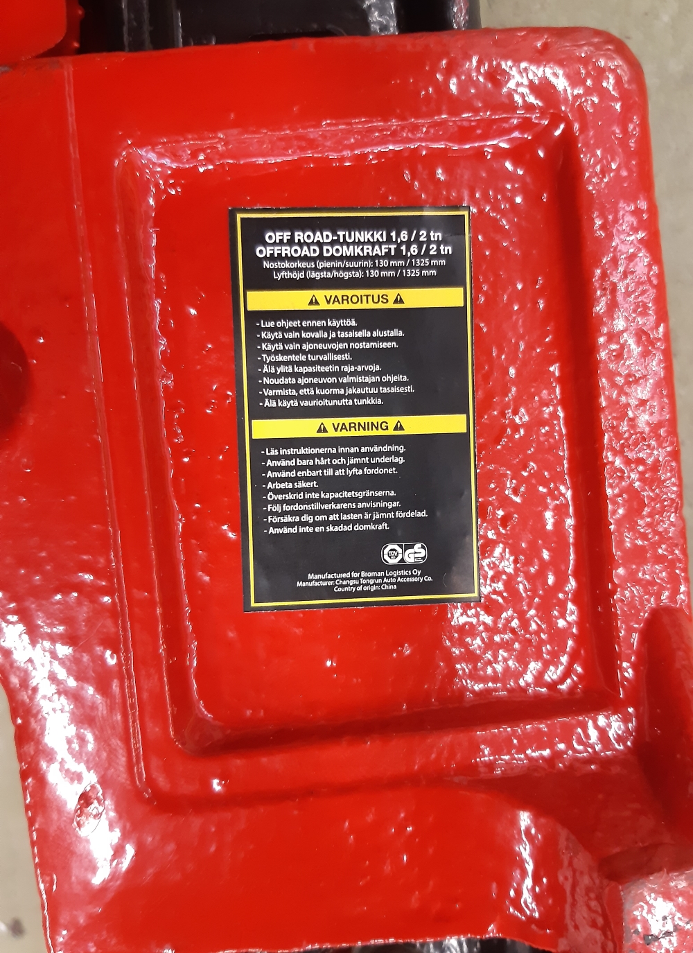 Tuote ei täytä valtioneuvoston asetuksen koneiden turvallisuudesta (400/2008) vaatimuksia eikä tuotetta koskevassa eurooppalaisessa harmonisoidussa standardissa SFS-EN 1494+A1 määriteltyä turvallisuuden tasoa. Tuotteen rakenteessa, merkinnöissä ja käyttöohjeissa on puutteita. Puutteista johtuen tuote ei sovellu tarkoitukseensa ja sen käyttö voi aiheuttaa loukkaantumisvaaraa tai muuta terveyden tai omaisuuden vaaraa.