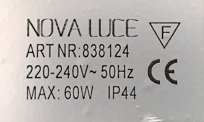 MAX. 60W-E27, 220-240V, 50Hz, class I, IP44 |