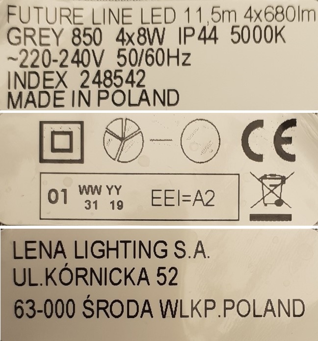 Tuote ei täytä sähköturvallisuuslain (1135/2016) eikä tuotetta koskevan eurooppalaisen harmonisoidun standardin EN 60598 vaatimuksia. Tuote ei täytä kotelointiluokan IPX4 (roiskevesikoe) vaatimuksia. Lisäksi tuotteen sisäiset peruseristetyt johtimet osuvat vedonpoistimien metallisten ruuvien teräviin kärkiin.