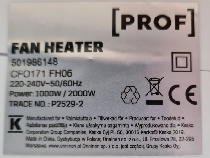 Tuote ei täytä sähköturvallisuuslain (1135/2016) eikä tuotetta koskevan eurooppalaisen harmonisoidun standardin EN 60335 vaatimuksia. Lämmittimen kotelo rikkoutuu epänormaalin käytön testissä sekä pudotustestissä.