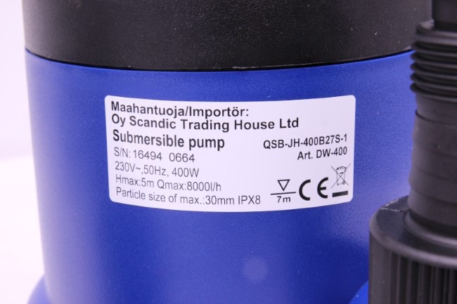 Tuote ei täytä kotelointiluokan IPX8 (upotus) vaatimuksia. Tuote ei täytä sähköturvallisuuslain (1135/2016) eikä tuotetta koskevan eurooppalaisen harmonisoidun standardin EN 60335 vaatimuksia.