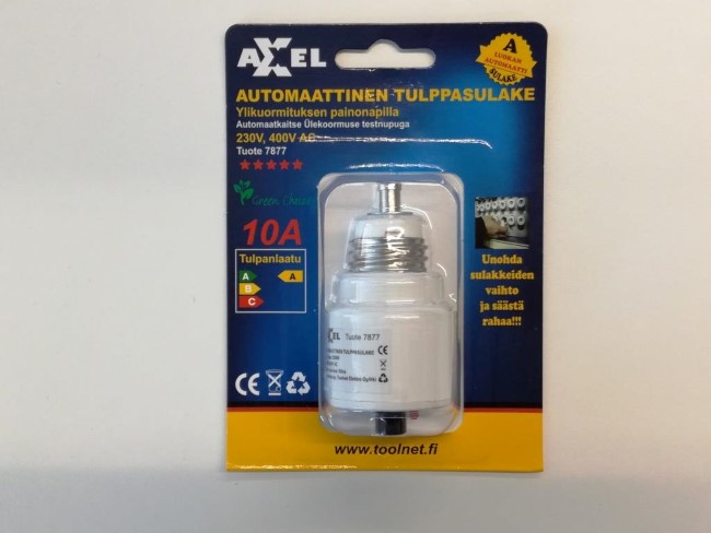 Yritys on vapaaehtoisesti sitoutunut lopettamaan tämän tuotteen myynnin ja muun luovuttamisen sekä ryhtymään toimenpiteisiin, joilla myymättömät tuotteet saadaan kerätyksi pois markkinoilta. Kuluttajansuojan osalta ohjeita ja sovitteluapua antaa antaa kuluttajaneuvonta www.kkv.fi/kuluttajaneuvonta.Tuote ei täytä sähköturvallisuuslain (1135/2016) eikä tuotetta koskevan eurooppalaisen harmonisoidun standardin EN 60898 vaatimuksia.