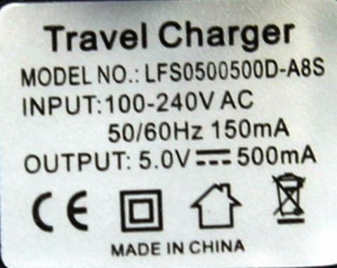 Input: 100-204 V, Output: 5V, 500 mA, IP20 |
