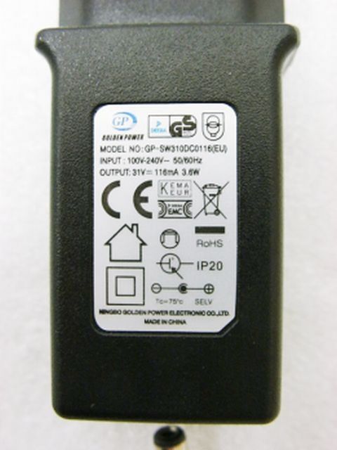 Muuntaja class III, IP20, Input 100-240V, output: 31V ; 116mA ; 3,6W. |