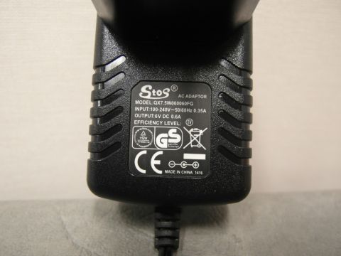 Input: 100-240 V ~, 50/60 Hz, 0.35 A, class II; Output: 6 VDC, 0.6 A |