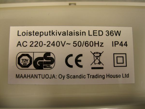 Valaisin ei täytä kotelointiluokan IP44 vaatimuksia.