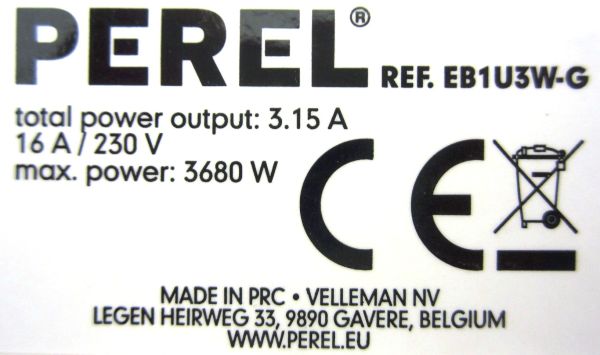 Input: 230 V, 16 A, class I; Output: Total power output: 3.15 A.; 230 V, 16 A, max. power: 3680 W |