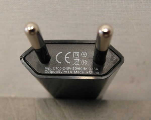 Input: 100-240 V, 50/60 Hz, 0.15 A, class II; Output: 5 V d.c., 1 A |