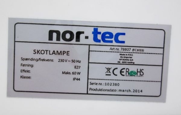 60W-E27, 230V, 50Hz, class II, IP44 |