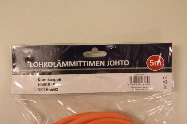 16A,250V~, 2P+suojakosketin, kaapeli H05RR-F 3G1,5mm², pituus 5m, |