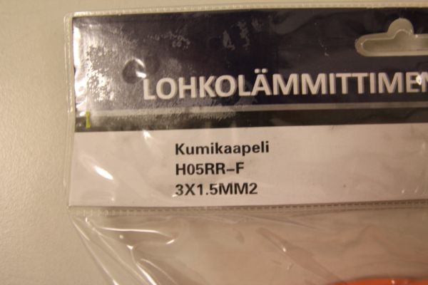 Auton lämmittimen liitäntäkaapeli (H05RR-F 3G1,5mm² Ningbo Xuanhua Electric) ei kestä standardien EN 50525-2-21 ja SFS 6000-7-753 mukaista taivutuskoetta alhaisessa lämpötilassa (-50°C).