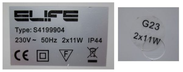 Tuote ei täytä sähköturvallisuuslain (410/1996) eikä tuotetta koskevan eurooppalaisen harmonisoidun standardin EN 60598-2-1 vaatimuksia. Tuote ei täytä kotelointiluokan IPX4 (roiskevesikoe) vaatimuksia.