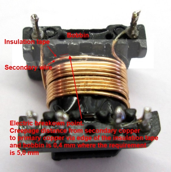 Tuote ei täytä sähköturvallisuuslain (1135/2016) eikä tuotetta koskevan eurooppalaisen harmonisoidun standardin EN 60950-1 vaatimuksia. Laturin eristyksessä on puutteita.