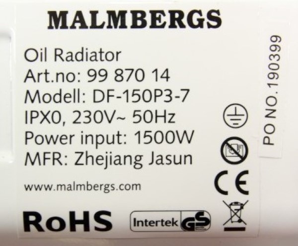 Tuote ei täytä sähköturvallisuuslain (1135/2016) eikä tuotetta koskevan eurooppalaisen harmonisoidun standardin EN 60335-2-30 vaatimuksia. Lämmitin kuumenee testeissä liikaa ja sen lämpösulake laukeaa.