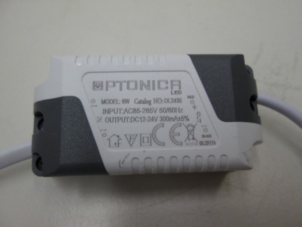 Valaisin / Luminaire: DS-6W, 300mA (cc),12-24V, class III, IP20 Liitäntälaite /Control gear : 85-265V, 50/60Hz, classII |