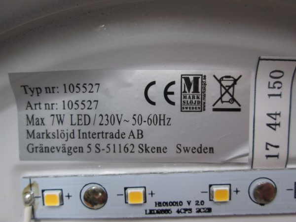 Tuote ei täytä kotelointiluokan IPX4 (roiskevesikoe) vaatimuksia. Tuote ei täytä sähköturvallisuuslain (1135/2016) eikä tuotetta koskevan eurooppalaisen harmonisoidun standardin EN 60598 vaatimuksia.