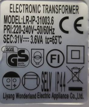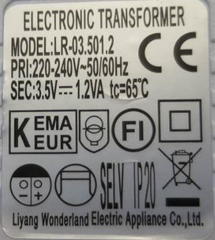 Esim. 3,5V/1,2 VA tai 31 V/3,6VA |