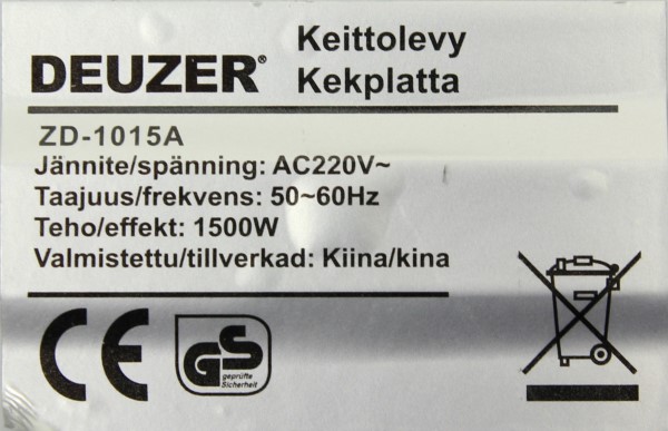 IPX0, lk I, 220V~, 50-60Hz, 1500W |