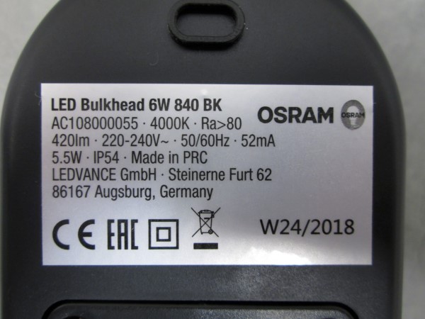 OSRAM LED Bulkhead 11W 840 black (EAN4058075150607)