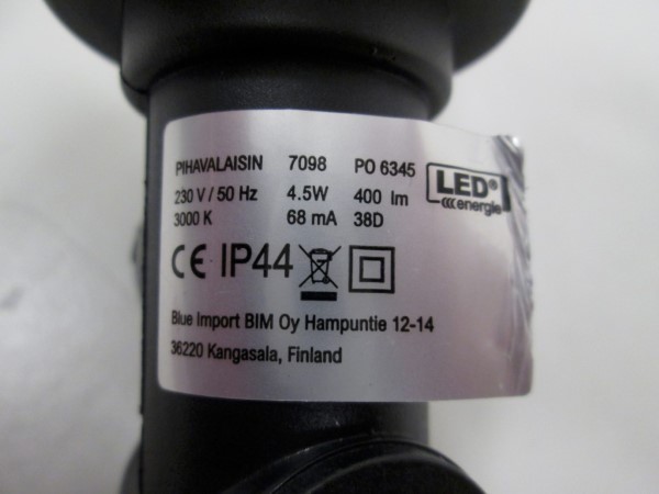 Tuote ei täytä sähköturvallisuuslain (1135/2016) eikä tuotetta koskevan eurooppalaisen harmonisoidun standardin EN 60598 vaatimuksia. Valaisimen liitäntäkaapeli ei kestä kylmätaivutustestiä, ja sen vedonpoisto on puutteellinen