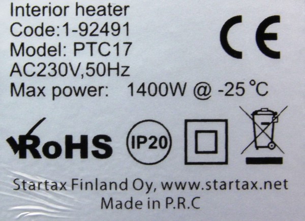 Auton sisätilanlämmittimen liitäntäkaapeli (H05RN-F 2X0,75mm², Qiaotong+) ei kestä standardien EN 50525-2-21, EN 50363-2-1 ja SFS 6000-8-813 (2017) mukaista taivutuskoetta alhaisessa lämpötilassa (-35°C). Tuote ei täytä sähköturvallisuuslain (1135/2016) eikä tuotetta koskevan eurooppalaisen harmonisoidun standardin EN 60335 vaatimuksia.