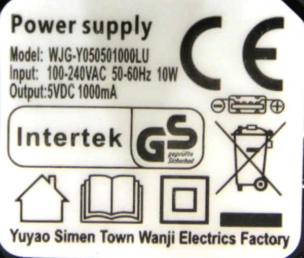 Latauslaite/Battery charger: Class II, IPX0, Input: 100-240VAC, 50-60Hz, 10W, Output: 5VDC, 1000mA |