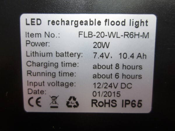 Valaisin: DS-20W, 12/24Vdc, lk III, IP65, akku: 7,4V & 10,4Ah |