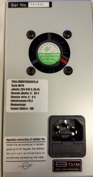 Input: 220-240 V, 50 Hz,Output: 0-30 V, 0-3 A DC |