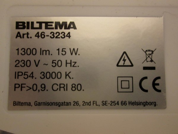 DB-15W, 230V, 50Hz, lk II, IP54 |