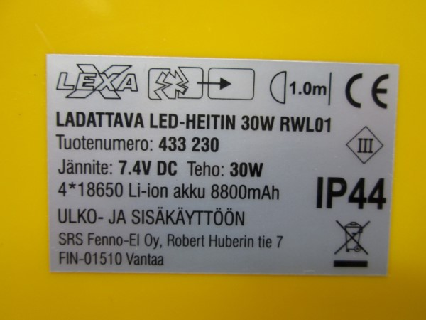 Valonheittimen latauslaitteen ensiö- ja toisiopiirien välinen eristys ei täytä vahvistetulle eristykselle asetettuja vaatimuksia. Tuote ei täytä sähköturvallisuuslain (1135/2016) eikä tuotetta koskevan eurooppalaisen harmonisoidun standardin EN 60598 vaatimuksia.