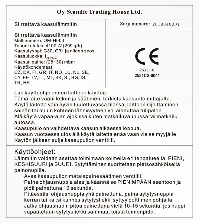 Maahantuoja Scandic Trading House Oy Ltd Yrittäjänkaari 7 30420 FORSSA