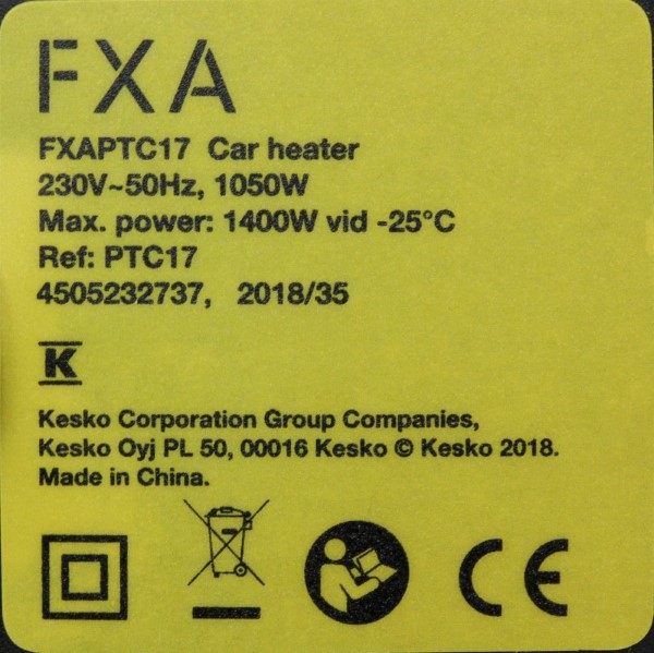 Tuote ei täytä sähköturvallisuuslain (1135/2016) eikä tuotetta koskevan eurooppalaisen harmonisoidun standardin EN 60335 vaatimuksia. Tuotteen liitäntäjohto ei kestä standardien EN 50525-2-21 ja EN 50363-2-1 mukaista taivutuskoetta alhaisessa lämpötilassa.