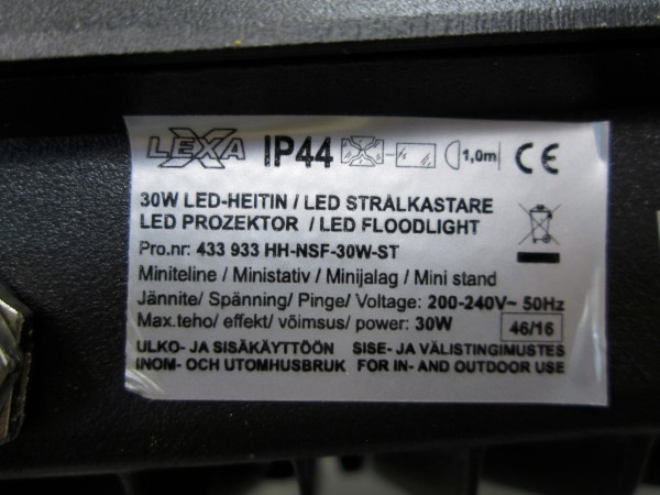 Tuote ei täytä sähköturvallisuuslain (1135/2016) eikä tuotetta koskevan eurooppalaisen harmonisoidun standardin EN 60598 vaatimuksia. Valaisimen eristyksessä, sisäisten johdinpäiden varmistuksessa ja vedonpoistossa on puutteita.