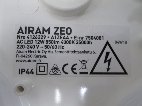 Tuote ei täytä kotelointiluokan IPX4 (roiskevesikoe) vaatimuksia. Tuote ei täytä sähköturvallisuuslain (1135/2016) eikä tuotetta koskevan eurooppalaisen harmonisoidun standardin EN 60598 vaatimuksia.