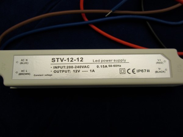 200-240V, 50-60Hz, 0,15A, 12VDC / 1A, class II, IP67 |