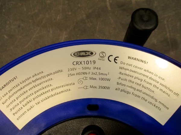 Johtokela ei täytä kotelointiluokan IPX4 (roiskevesikoe) vaatimuksia.Johtokela ei täytä sähköturvallisuuslain (1135/2016) eikä tuotetta koskevan eurooppalaisen harmonisoidun standardin EN 61242 vaatimuksia.