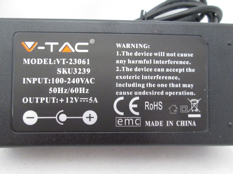 Liitäntälaite: 100-240V, 50/60Hz, 12VDC / 5A, class II, IP20. LED-nauha: DS, 12VDC, class III, IP65 |