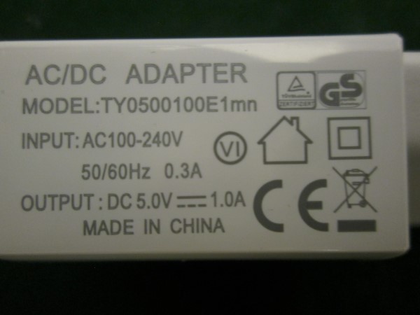 Valaisin / Luminaire: DS-5V/1A, class III, Verkkoliitäntäkoje / Power supply unit: Input: 100-240VAC, 50/60Hz, 0,3A; |