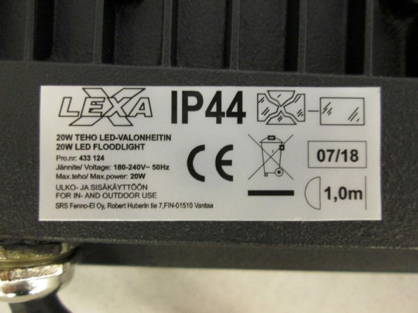 Tuotteen liitäntäjohto ei kestä standardien EN 50525-2-21 ja EN 50363-2-1 mukaista taivutuskoetta alhaisessa lämpötilassa (-35°C).Tuote ei täytä sähköturvallisuuslain (1135/2016) eikä tuotetta koskevan eurooppalaisen harmonisoidun standardin EN 60598 vaatimuksia.