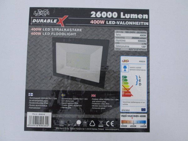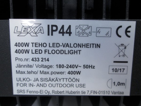 Valonheittimen liitäntäjohdon vedonpoistin ei täytä tuotestandardissa annettuja vaatimuksia. Tuote ei täytä sähköturvallisuuslain (1135/2016) eikä tuotetta koskevan eurooppalaisen harmonisoidun standardin EN 60598 vaatimuksia.