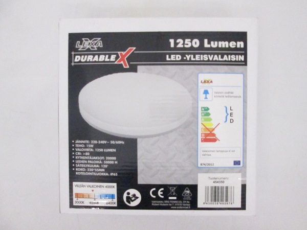 Tuote ei täytä kotelointiluokan IPX5 (suihkuvesikoe) vaatimuksia. Tuote ei täytä sähköturvallisuuslain (1135/2016) eikä tuotetta koskevan eurooppalaisen harmonisoidun standardin EN 60598 vaatimuksia.