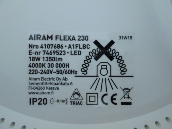 Lämpenemismittauksessa valaisimen asennuspinnan lämpeneminen ylittävät tuotestandardissa annetut maksimiarvot. Tuote ei täytä sähköturvallisuuslain (1135/2016) eikä tuotetta koskevan eurooppalaisen harmonisoidun standardin EN 60598 vaatimuksia.