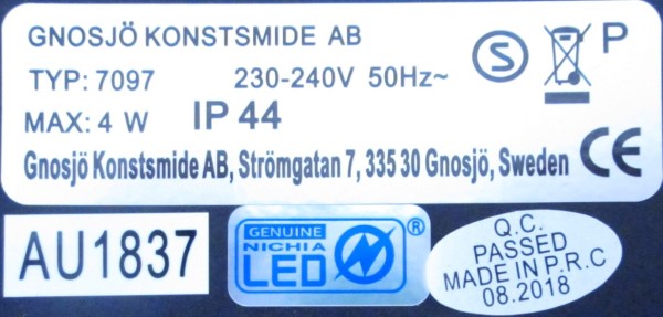 Tuote ei täytä kotelointiluokan IPX4 (roiskevesikoe) vaatimuksia. Tuote ei täytä sähköturvallisuuslain (1135/2016) eikä tuotetta koskevan eurooppalaisen harmonisoidun standardin EN 60598 vaatimuksia.