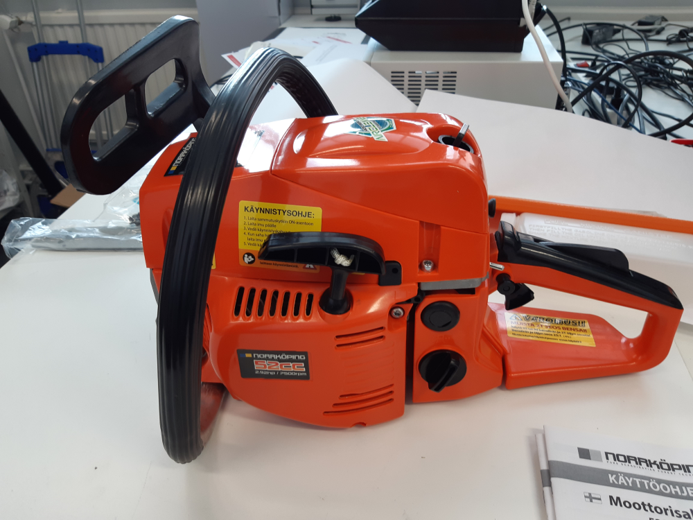 Tuote ei täytä valtioneuvoston asetuksen koneiden turvallisuudesta (400/2008) eikä tuotetta koskevan eurooppalaisen harmonisoidun standardin EN ISO 11681-1 vaatimuksia. Tuotteen rakenteessa, merkinnöissä ja käyttöohjeissa on puutteita. Puutteista johtuen tuote ei sovellu tarkoitukseensa ja sen käyttö voi aiheuttaa loukkaantumisvaaraa tai muuta terveyden tai omaisuuden vaaraa.