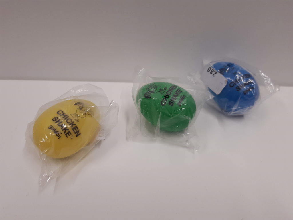 Tuotteet mahtuvat lelujen turvallisuusstandardin EN 71-1 mukaisen testikappaleen läpi. Testikappaleesta ei saa mennä läpi mikään lelu (tai sen osa), joka on tarkoitettu istumaan kykenemättömille lapsille (alle 10kk). Lelu joka mahtuu testikappaleen läpi voi aiheuttaa vaaraa, jos lapsi työntää lelun suuhun, ja munanmallisen muotonsa vuoksi tuotetta on vaikea poistaa lapsen hengitysteistä tai nielusta. Lisäksi tuote rikkoutui testeissä aiheuttaen pieniä osia. Pieni lapsi voi tukehtua tuotteeseen tai sen osiin.